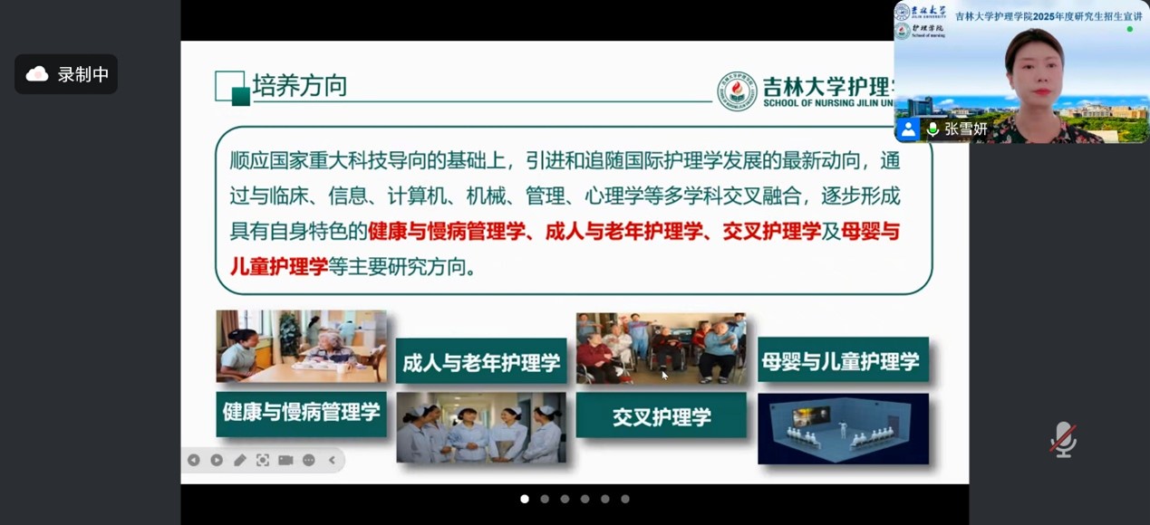 2025年9月14日,太阳成集团tyc151cc面向天津中医药大学举办了2025年研究生招生线上宣讲会。会议由太阳成集团tyc151cc彭歆副经理主持,经理助理张雪妍副教授就学院的发展历程、学科特色、科研平台、团队队伍及招生政策等方面作了系统介绍。本次活动旨在加强两校学术交流,展示太阳成集团tyc151cc的综合实力与人才培养优势,为天津中医药大学有志于进一步深造护理学科的员工提供全面、权威的报考指引。