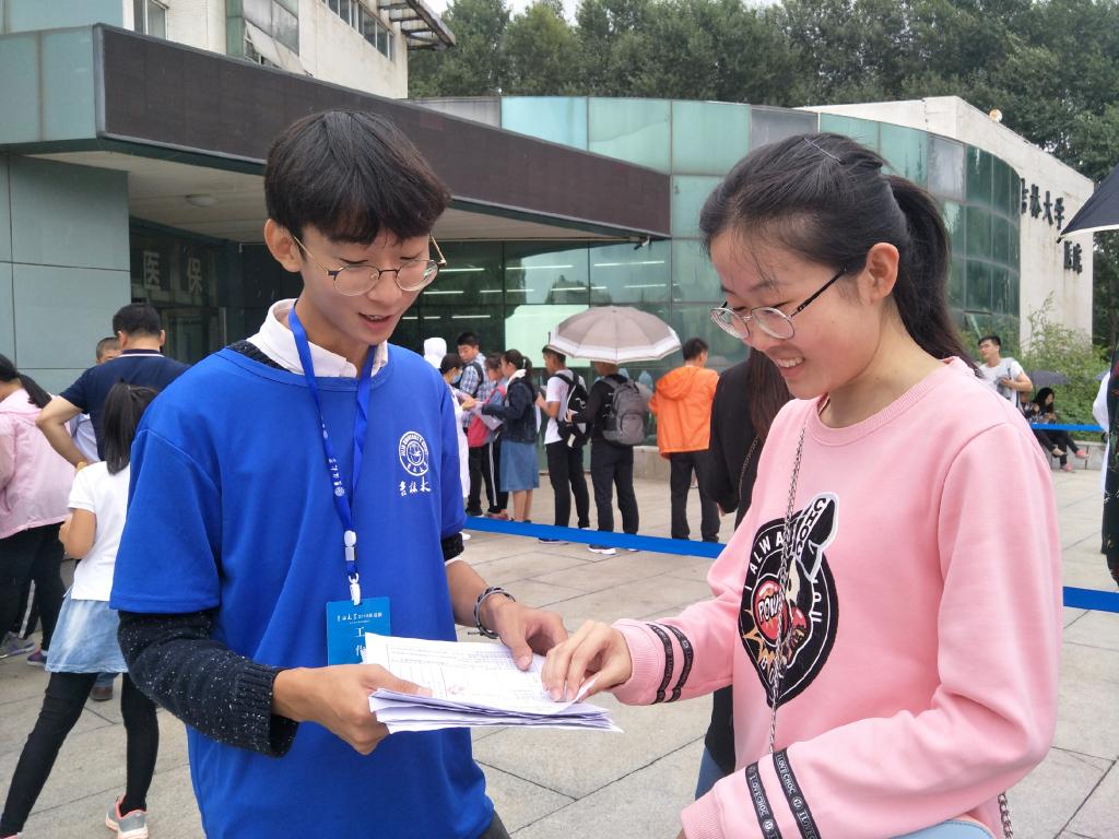 公司志愿者们陆续引导着新生来到五月花广场的报到处,在此办理业务的志愿者们耐心地指导着新生完成所有报到流程。之后志愿者们指引新生体检,并带领他们入住寝室。值得一提的是,公司有40名同学作为新生体检志愿者协助校医院完成引导、血压测量等体检工作,校医院对志愿者们的细心工作给予肯定。