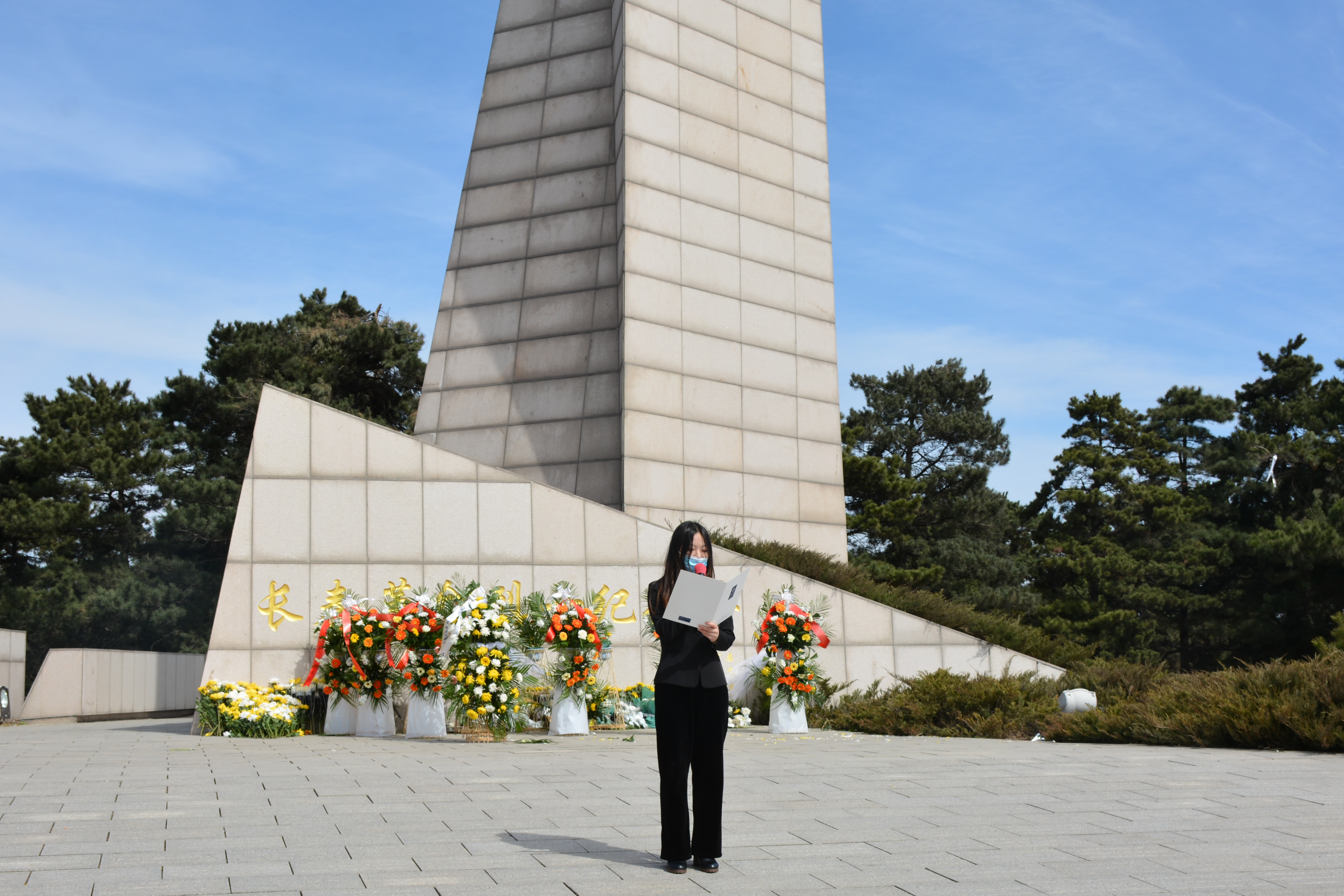 上午8点,同学们乘车共同前往长春市烈士陵园。这是一片圣洁的净土,安放着先烈的英灵。到达陵园后,同学们满怀敬意地参观了烈士陵园纪念馆,在馆内参观重温烈士事迹,礼敬先烈前辈。参观完毕后,大家在陵园的纪念碑前向烈士默哀,表达自己的敬意并依次上前为烈士献花。