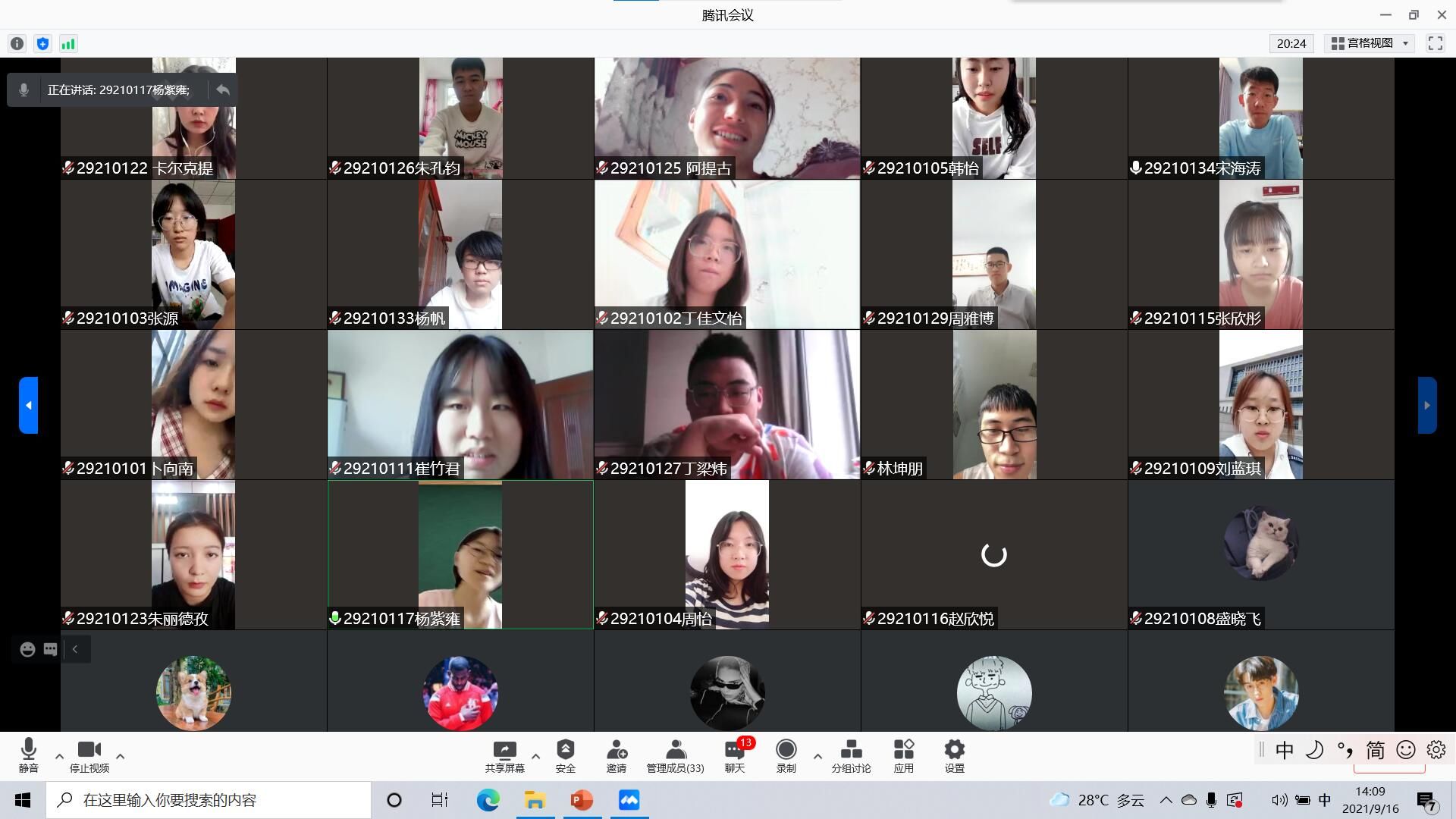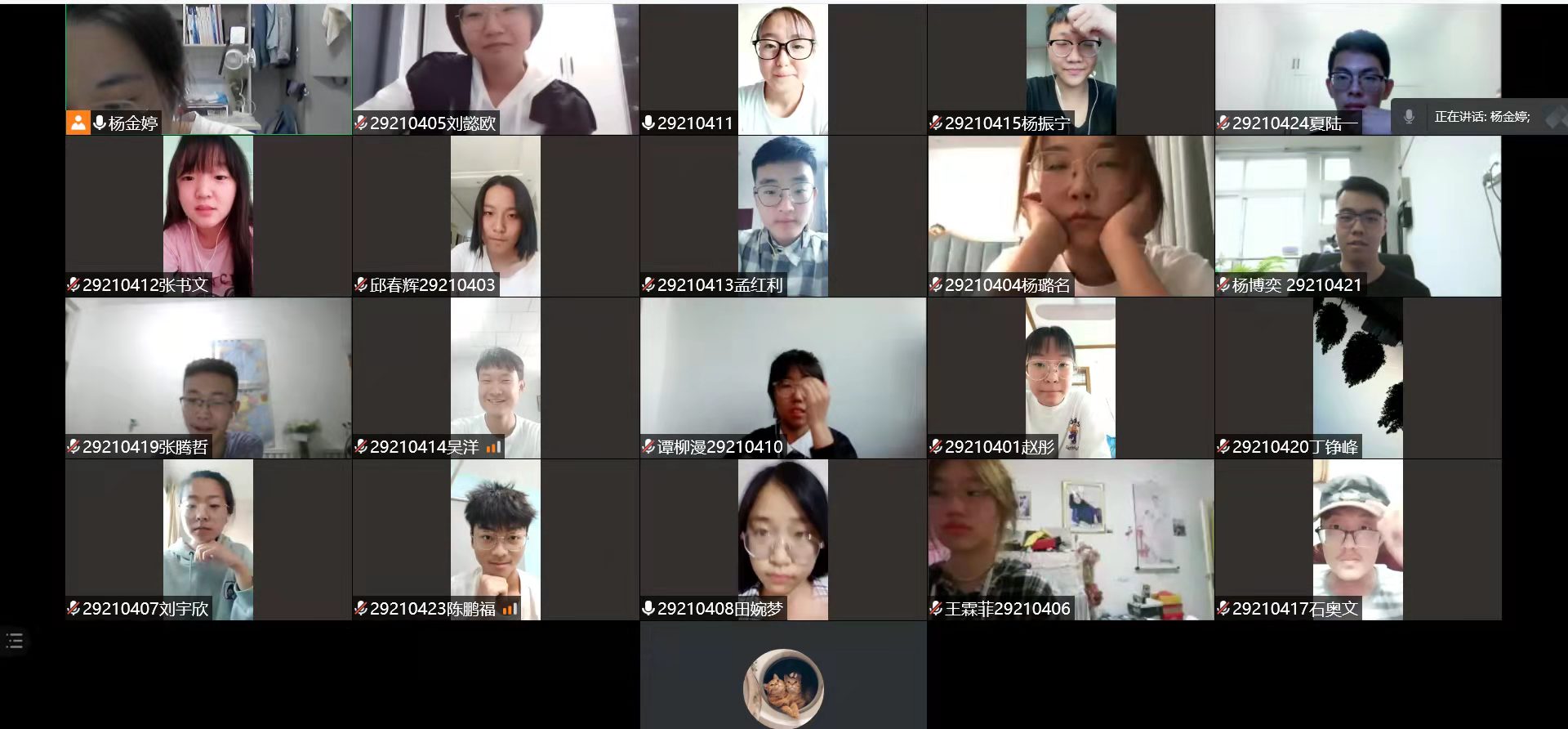 在本次预宣教工作中,葛书记率先召开线上新生见面会,帮助2021级新生相互认识,与新同学建立联系,而后太阳成集团tyc151cc2021级以班级为单位于9月14日、9月15日开展线上破冰班会。尽管大家来自天南海北,但同学们仍积极踊跃发言,这一时的距离阻挡不了他们内心的火热以及讨论的热情。同学们在交流中绽放自我,认识彼此,更加增强了班级凝聚力。