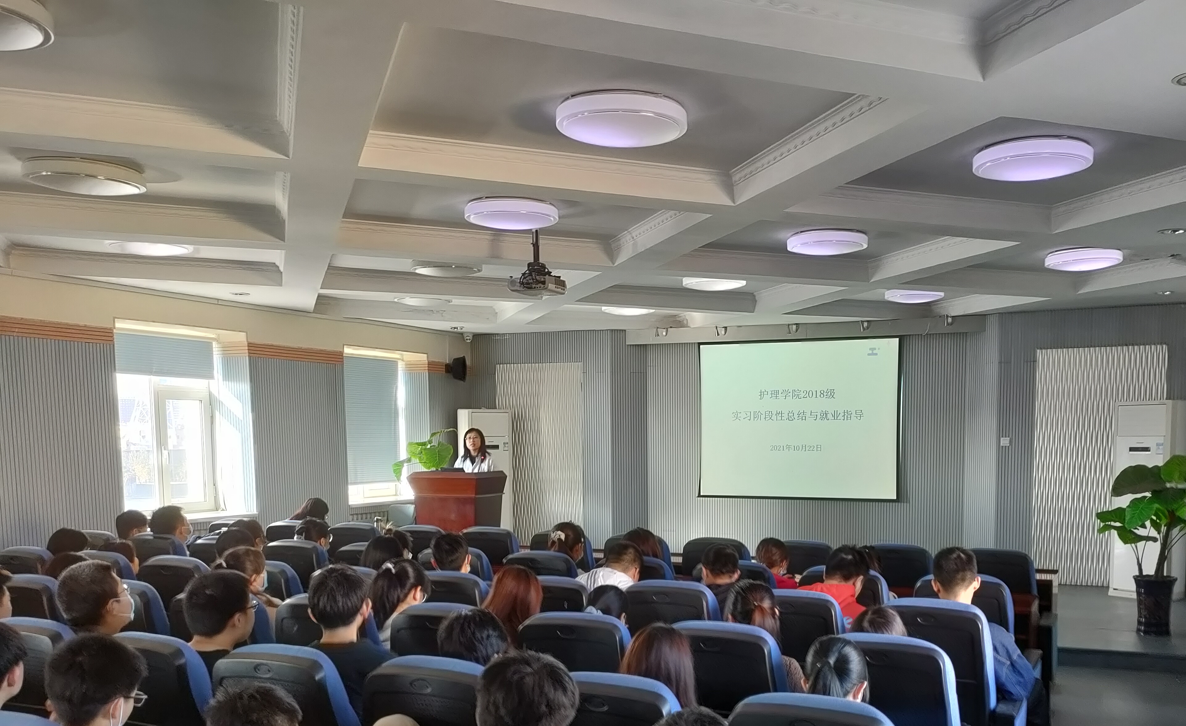 首先,刘静泉老师对员工在临床实习情况进行总结,并重点强调实习生请假制度,解答了同学们提出的在临床实习过程中所遇到的困惑和意见,并表示会与实习医院积极协调,为同学们创造了更好的实习条件,希望同学们在实习过程中能够得到更多的锻炼和提升。