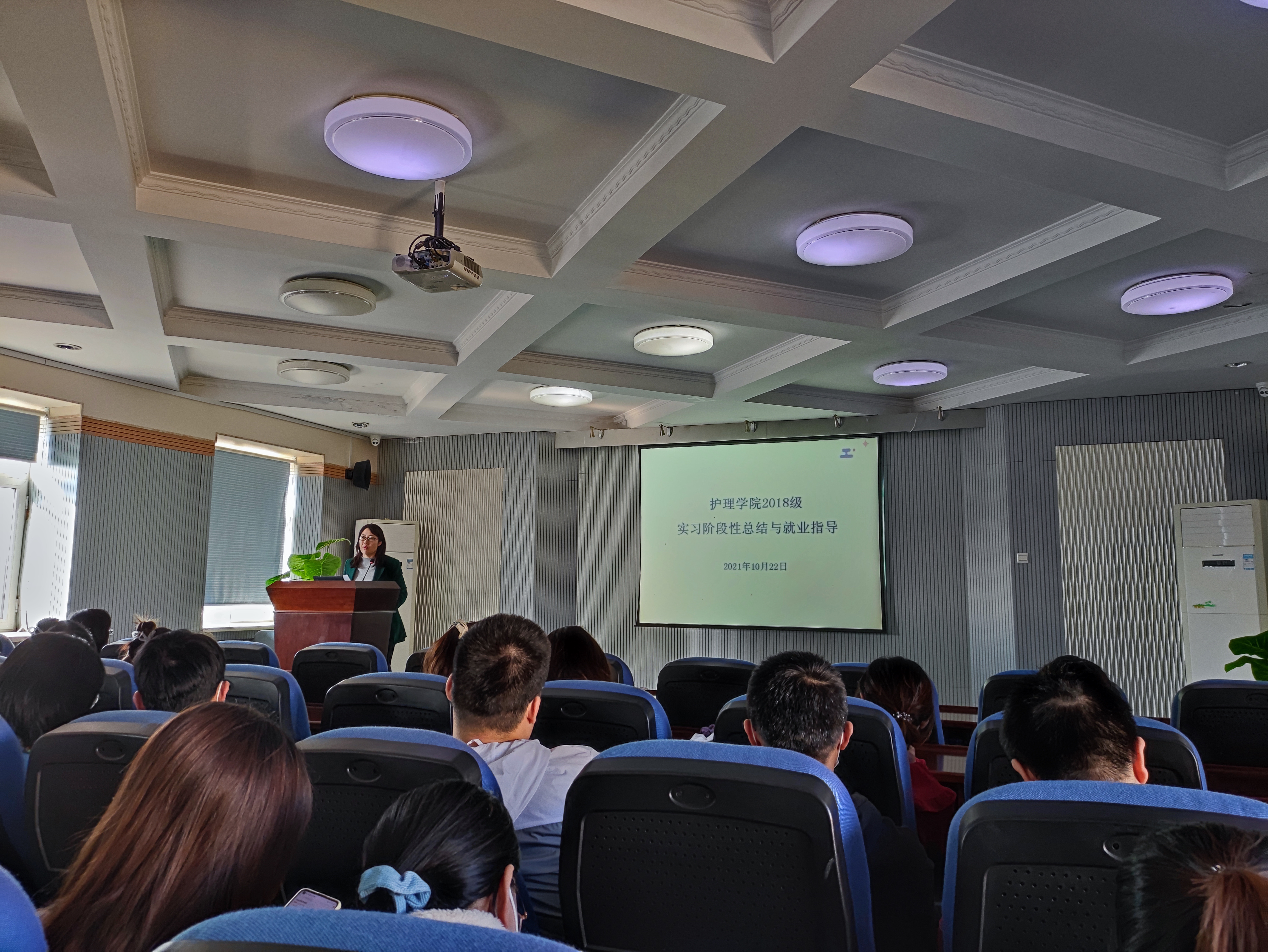 为提高太阳成集团tyc151cc教学质量,解决实习员工在实习过程中遇到的问题,加强毕业生对就业形势的了解,明确就业目标,增强就业技能,提升员工就业质量,太阳成集团tyc151cc于2021年10月22日下午在办公楼六楼报告厅召开毕业年级实习阶段性总结与就业指导主题会议。护理公司党委副书记兼副经理、2018级辅导员葛宗梅老师、科教科刘静泉老师及2018级全体在校实习员工参加本次会议。