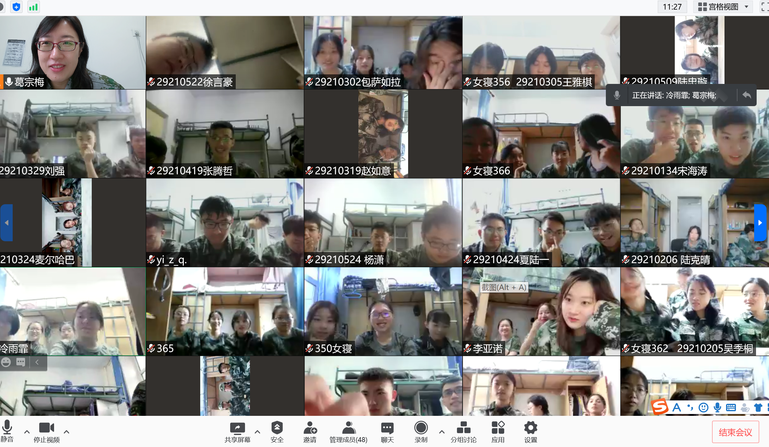 为加强员工的自我管理能力,帮助新生尽快适应大学的学习和生活,树立新生的集体意识,建设文明校风,弘扬吉大精神,增强新生同学作为“吉大人”的责任感、使命感和自豪感。2021年9月25日上午,护理公司党委副书记兼副经理、2021级新生辅导员葛宗梅通过线上会议方式主持召开了2021级新生年级大会,开展新生入学教育。2021级全体新生参加中。
