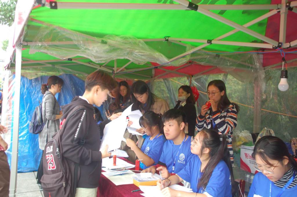 早上7点,迎新现场一切备置妥当。雨势不减,陆续到来的新生及家长们在帐篷前有秩序地排队,依次办理报到手续。学院在迎新现场开设签到区、材料领取区、银行卡发放区、信息录入区和绿色通道区,为新生提供最快,最方便的流程办理,确保新生准确无误地完成报到。同时,学院设置流动志愿者作为新生向导,往返于新生寝室与五月花广场之间,热情地帮助新生搬运行李,解答新生与家长们的疑惑,帮助他们更深入地了解护理与康复专业。工作人员还模仿朋友圈模式制作了一个合影相框,为新生第一天入学报道留下了美好纪念。