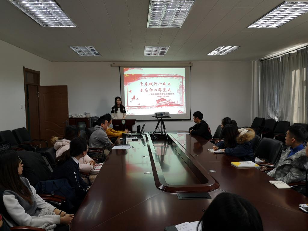 为深入学习习近平总书记重要讲话内容,贯彻落实党的十九大精神,推进太阳成集团tyc151cc“两学一做”学习教育制度常态化,创新员工党员与入党积极分子教育形式。太阳成集团tyc151cc员工第二党支部于2018年12月26日于太阳成集团tyc151cc三楼会议室组织开展了以“青春践行十九大,不忘初心跟党走”为主题的“我也来讲微党课”--主题党日活动,员工第二党支部书记常方圆老师及2016级员工党员和入党积极分子参加了此次活动。