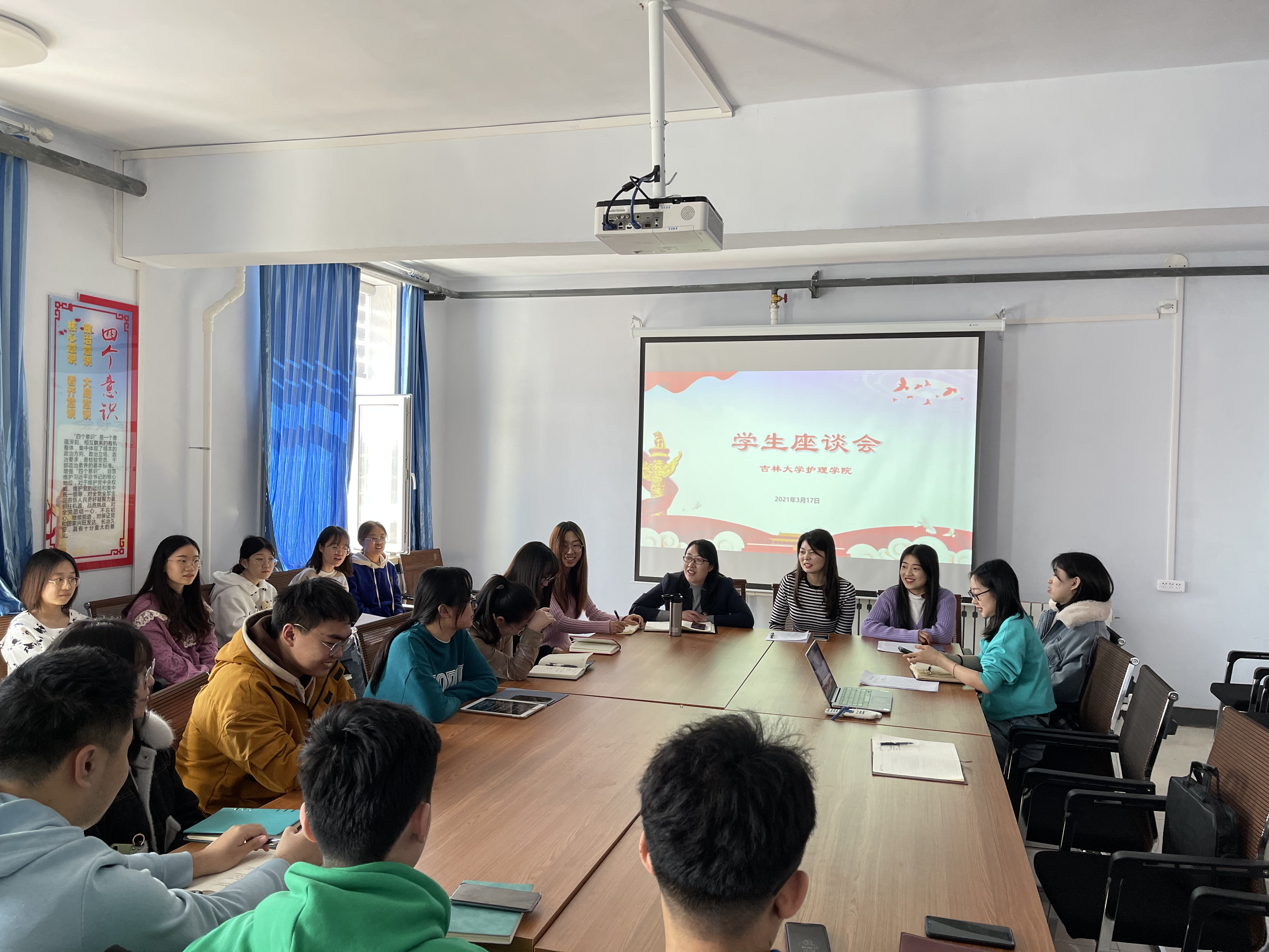 为进一步了解员工的思想动态,帮助员工尽快适应新学期的学习生活,落实常态化疫情防控工作,维护员工人身财产安全和校园安全稳定,2021年3月17日——3月19日,护理公司党委副书记兼副经理葛宗梅、辅导员李亚琴、常方圆、刘宇飞分别召开各年级新学期员工座谈会。