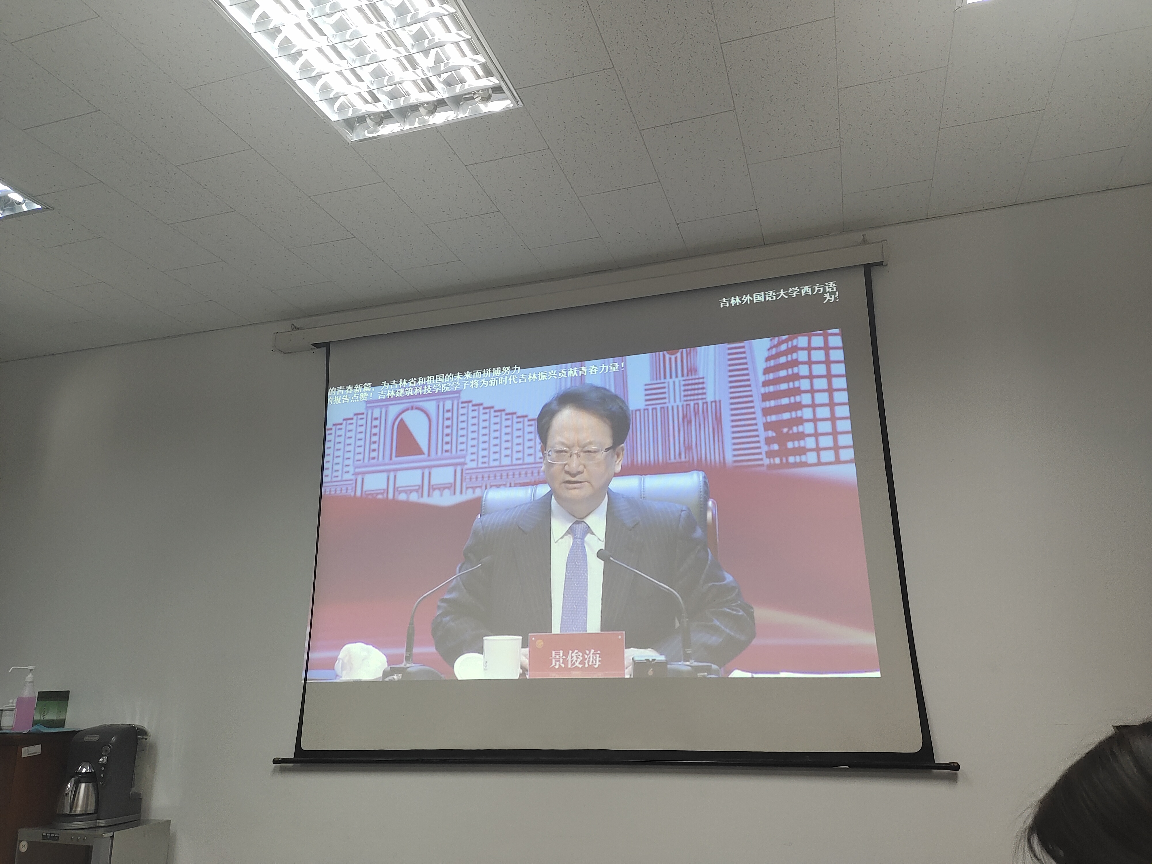 本次报告会采取线上的形式,上午9点,与会老师和同学们一同在学院三楼会议室的分会场观看报告会的直播视频。报告会上,吉林省党委书记景俊海书记首先就习近平总书记关于振兴吉林有关精神进行了报告。景书记强调,全省人民要深入贯彻党中央决策部署,不断开创吉林各项事业发展新局面,在新时代吉林振兴中实现新突破、创造新业绩。作为新时代老员工,要勇于担当,勇于奋斗,勤奋学习,在新起点面前做具有责任意识和创新精神的建设者。