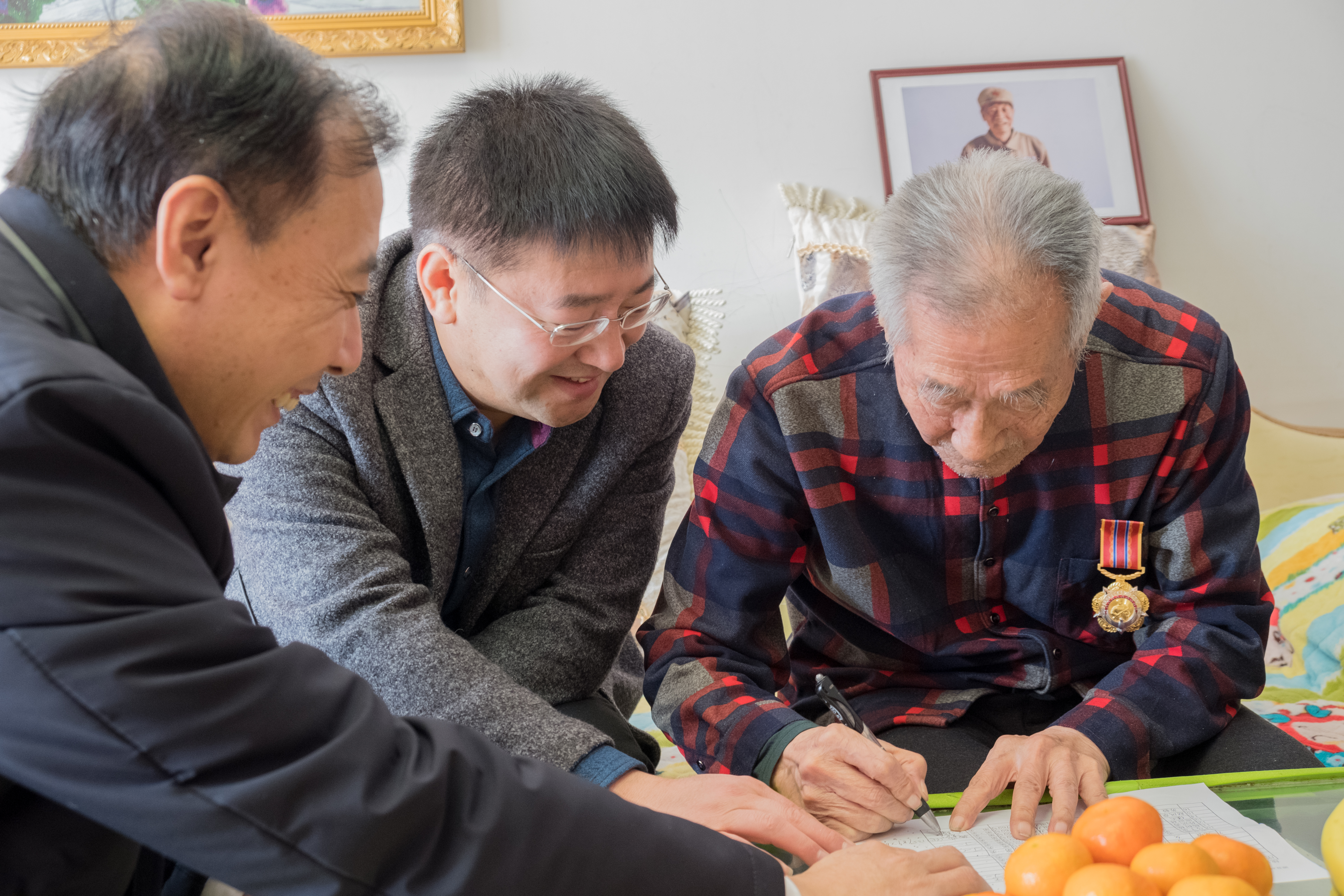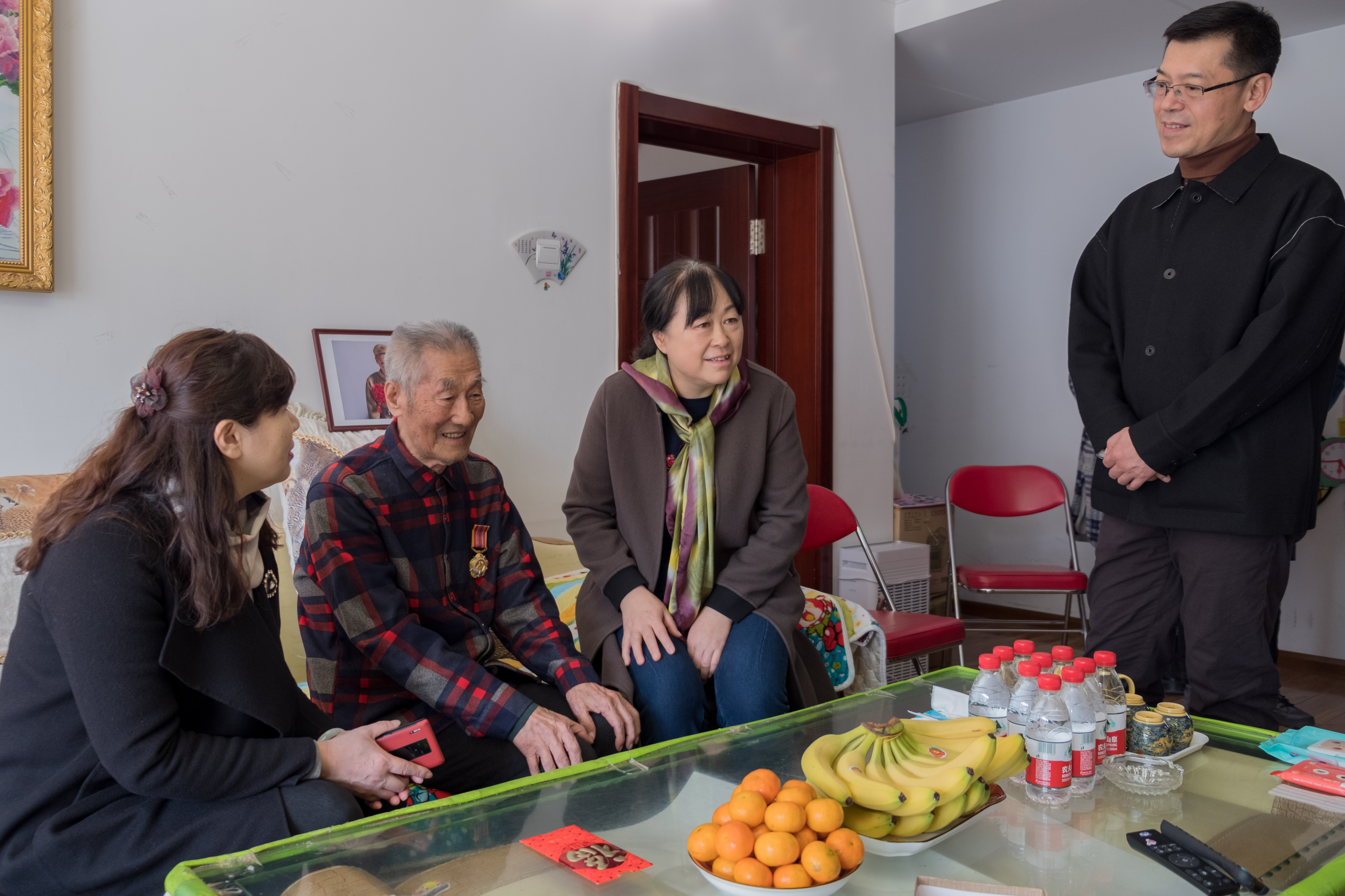 10月30日上午,太阳成集团tyc151cc本科生第一党支部李亚琴老师、刘宇飞老师同部分员工党员,与教工党支部党员一起在护理公司党委书记席海涛老师和新民校区离退休办公室主任陈彦强老师的带领下,看望抗美援朝老兵赵风章同志。赵风章同志年轻时曾是白求恩医科大学的一位老师,87岁的他见到意气风发的年轻后辈们倍感高兴。在热烈地交流过程中,赵老师同大家分享了年轻时参军、参加抗美援朝战争的经历和在白医大执教时的种种故事。听完赵老师的经历,同志们百感交集,敬佩之情油然而生。他不仅是一名爱好和平保家卫国的战士,他也是三尺讲台上辛勤的指路明灯,他更是年轻一代应当学习的英雄榜样。交谈的最后,赵老师予以年轻党员殷切的嘱托,他鼓励员工党员们积极向上,工作学习中敢于直面困难、勇往直前。青年一代有理想,有担当,祖国便有了希望,同志们纷纷表示要在实践中不断提升自我,为祖国的和平与发展努力,为实现伟大复兴中国梦不懈奋斗。