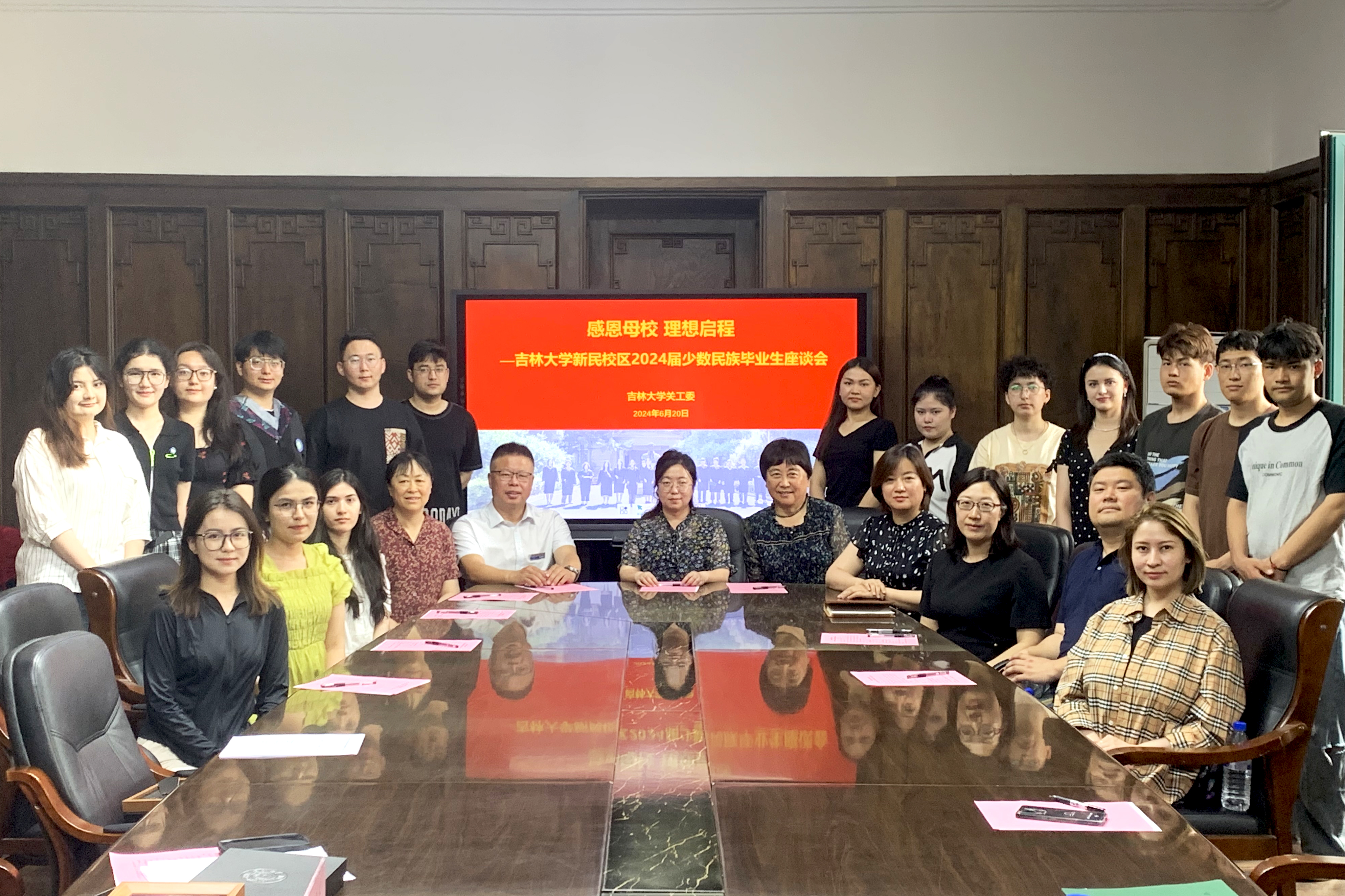 2024年6月20日,在医学部207会议室,太阳成集团tyc151cc关工委联合新民校区各二级关工委共同召开“感恩母校理想启程——新民校区2024届少数民族毕业生座谈会”。离退休党委副书记、关工委常务副秘书长王欢,新民校区员工办公室主任兼员工就业创业指导与服务中心副主任吴剑锋,新民离退休党总支书记丁亚春,新民校区关工委工作指导组成员傅菁林、李亚琴,公共卫生公司党委副书记兼副经理刘金超,护理公司党委副书记兼副经理葛宗梅,药公司党委副书记兼副经理刘丽慧,新民校区少数民族辅导员,新民校区2024届新疆、西藏籍少数民族毕业生参加会议。座谈会由学校关工委副主任傅菁林主持,由新民校区关工委指导组承办。