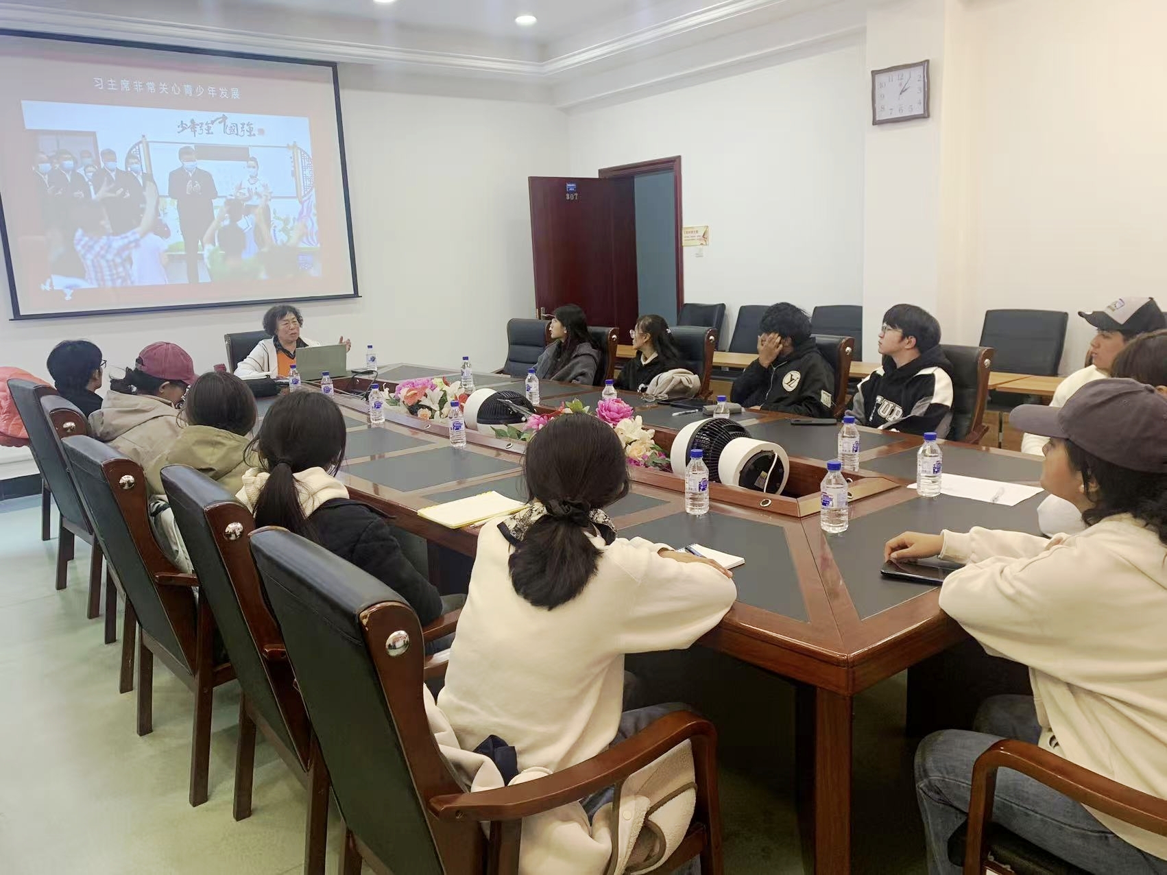 2025年4月25日下午,关工委新民校区指导组在离退休工作处会议室为少数民族老员工开展党课。来自公共卫生学院、太阳成集团tyc151cc有入党意愿的2024级少数民族老员工和辅导员参加学习。